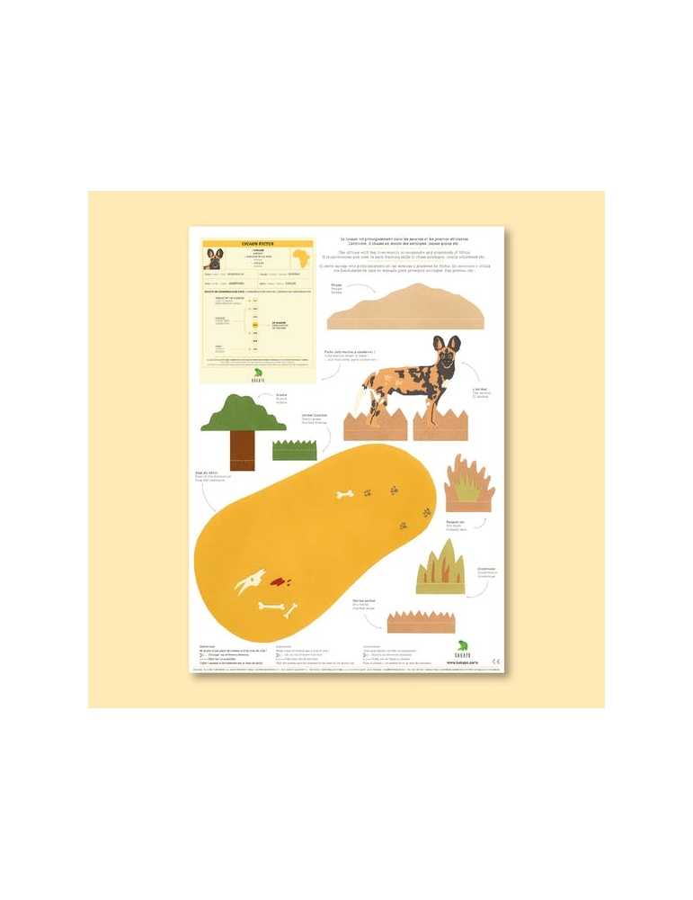 Instructions: Se munir d’une paire de ciseaux et d’un tube de colle ! Découper les différents éléments. Plier sur les pointillés. Coller l’animal et les éléments sur la base du décor. Conserver les observations sur l’animal !