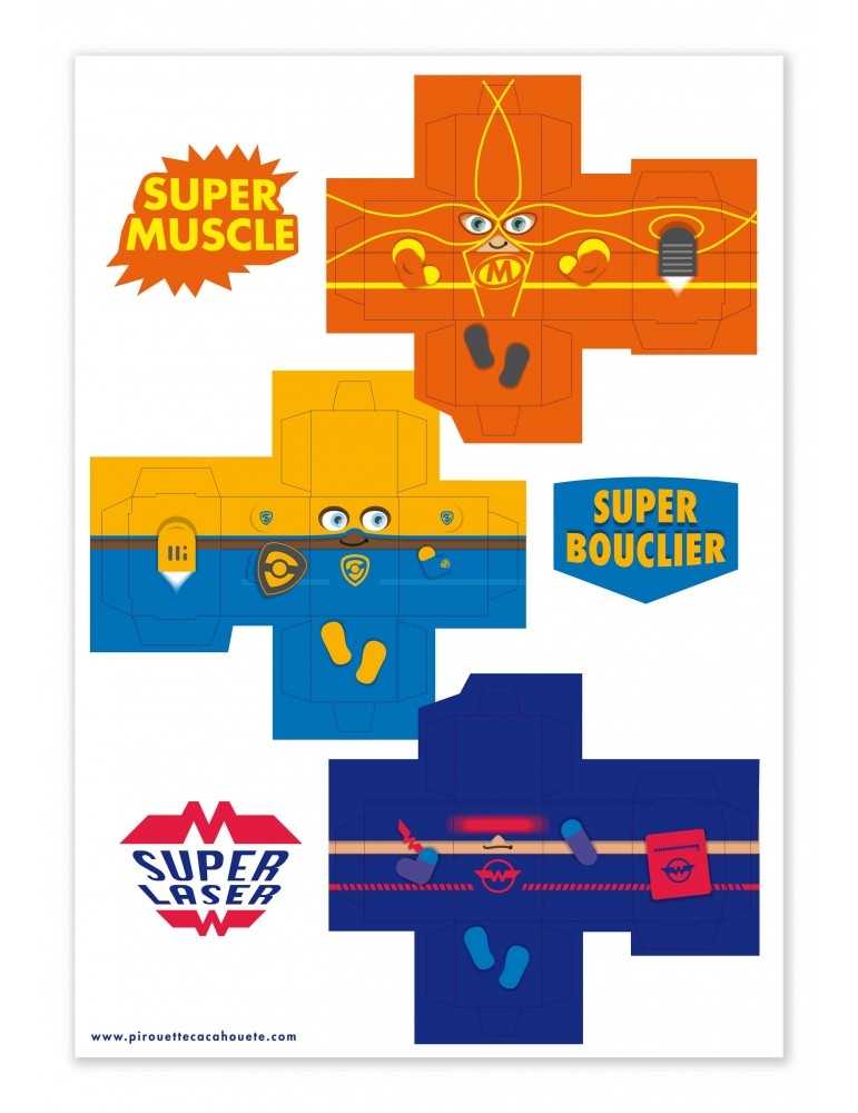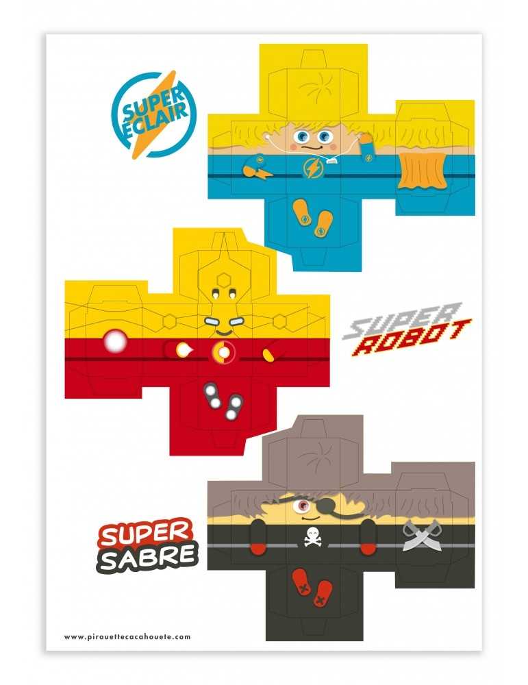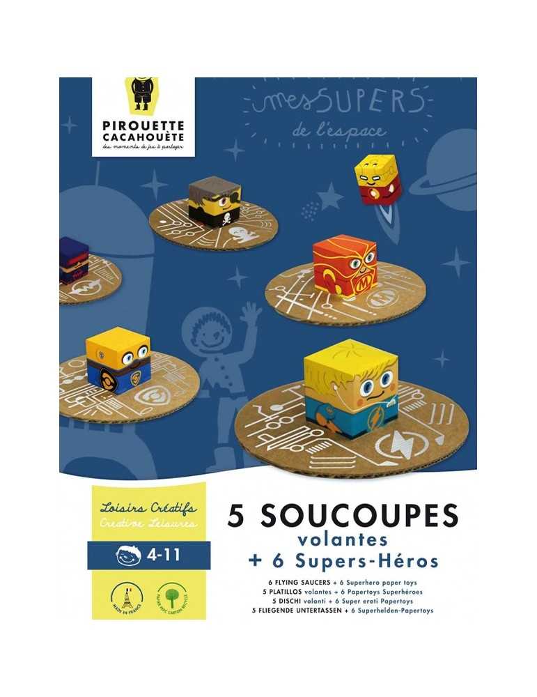 3 planchettes pré-découpées pour réaliser 6 super-héros et 5 soucoupes volantes sans colle ni ciseaux