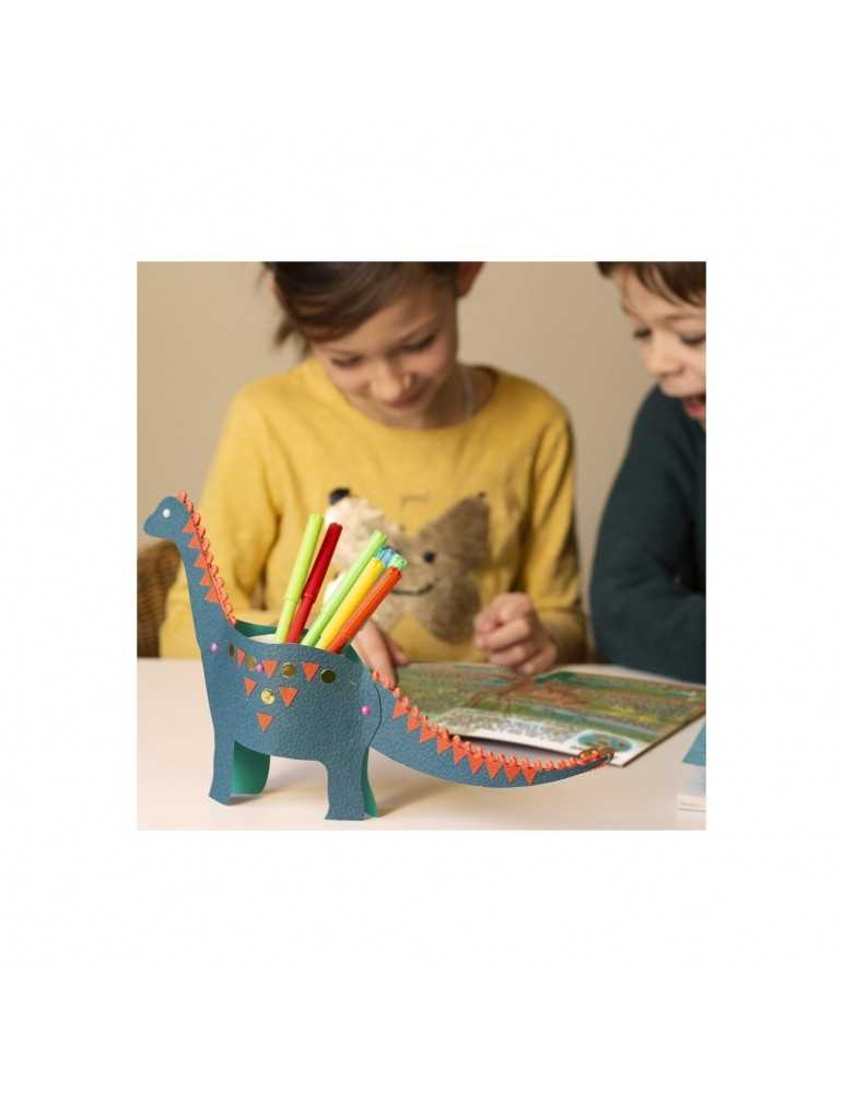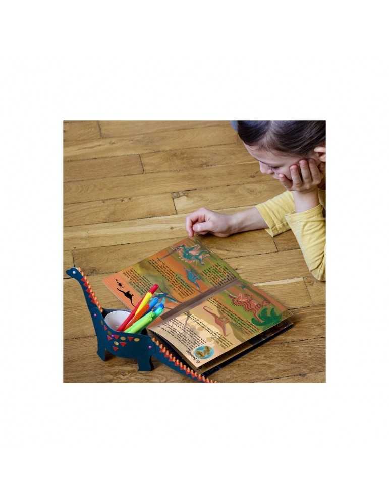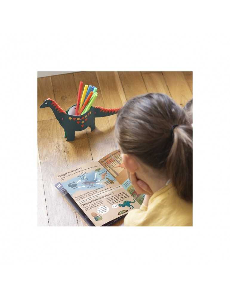 Atelier créatif permettant de réaliser un Diplodocus pot à crayons et découvrir ces incroyables créatures grâce à un livret illustré.