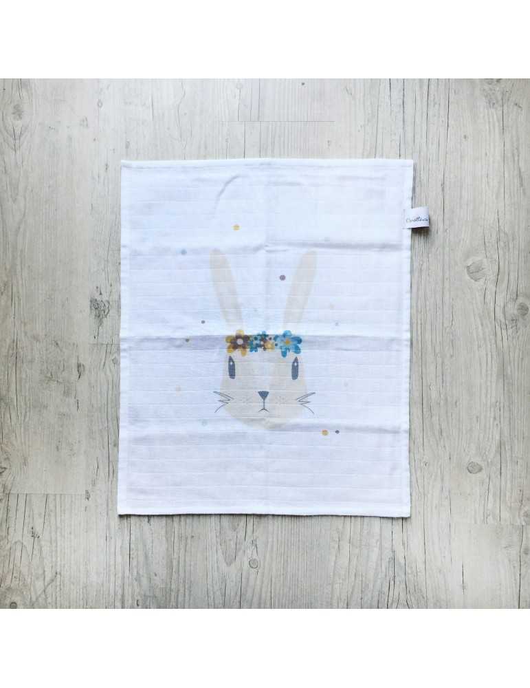 Le lange double gaze Lapin est réalisé en coton bio (GOTS) et imprimé avec des encres à l’eau certifiée Oeko-tex respectueuse de la peau de bébé. Véritable essentiel à garder sous la main pour les parents. Le lange est très doux (surtout après quelques lavages) et peut servir à débarbouiller bébé après le repas, faire office de bavoir d’épaule ou bavoir d’appoint.