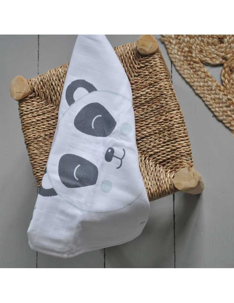 Le lange double gaze Panda est réalisé en coton bio (GOTS) et imprimé avec des encres à l’eau certifiée Oeko-tex respectueuse de la peau de bébé. Véritable essentiel à garder sous la main pour les parents. Le lange est très doux (surtout après quelques lavages) et peut servir à débarbouiller bébé après le repas, faire office de bavoir d’épaule ou bavoir d’appoint.