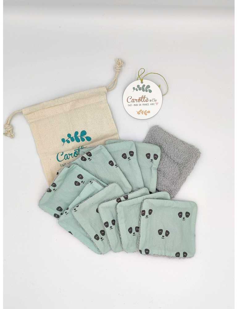 Lot de 10 lingettes lavables - Panda eucalyptus