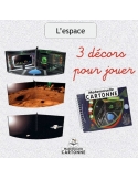 3 jolis décors robustes sur le thème de l'Espace pour s'imaginer des histoires à l'infini avec toutes les petites figurines que les enfants possèdent (inclus carte de personnages en carton à découper)