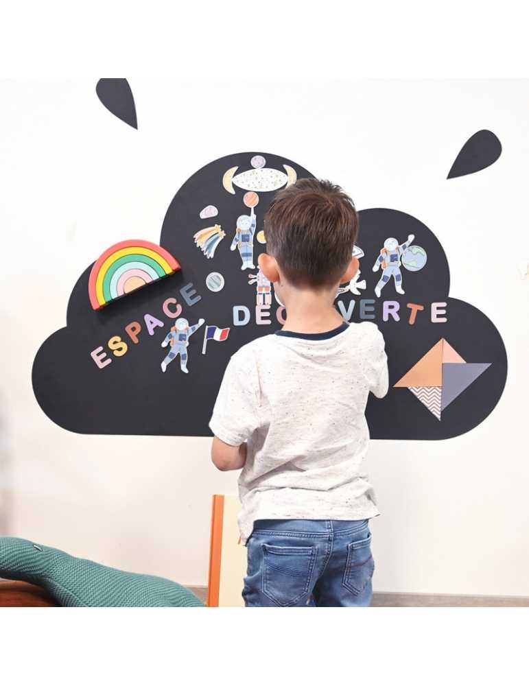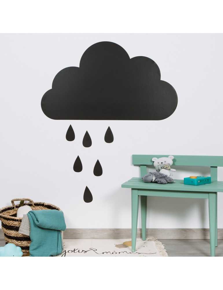 Vous avez envie d'une décoration créative ? Le tableau magnétique ardoise permet d'offrir un espace physique d'affichage décoratif à votre enfant pour créer, imaginer et jouer. Pour compléter la décoration à votre guise, 6 gouttes de pluie accompagnent ce tableau nuage.