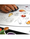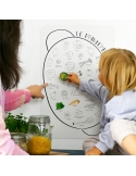 - 3 planches de magnets fruits et légumes (56 magnets) de taille adaptée aux enfants en bas âge.