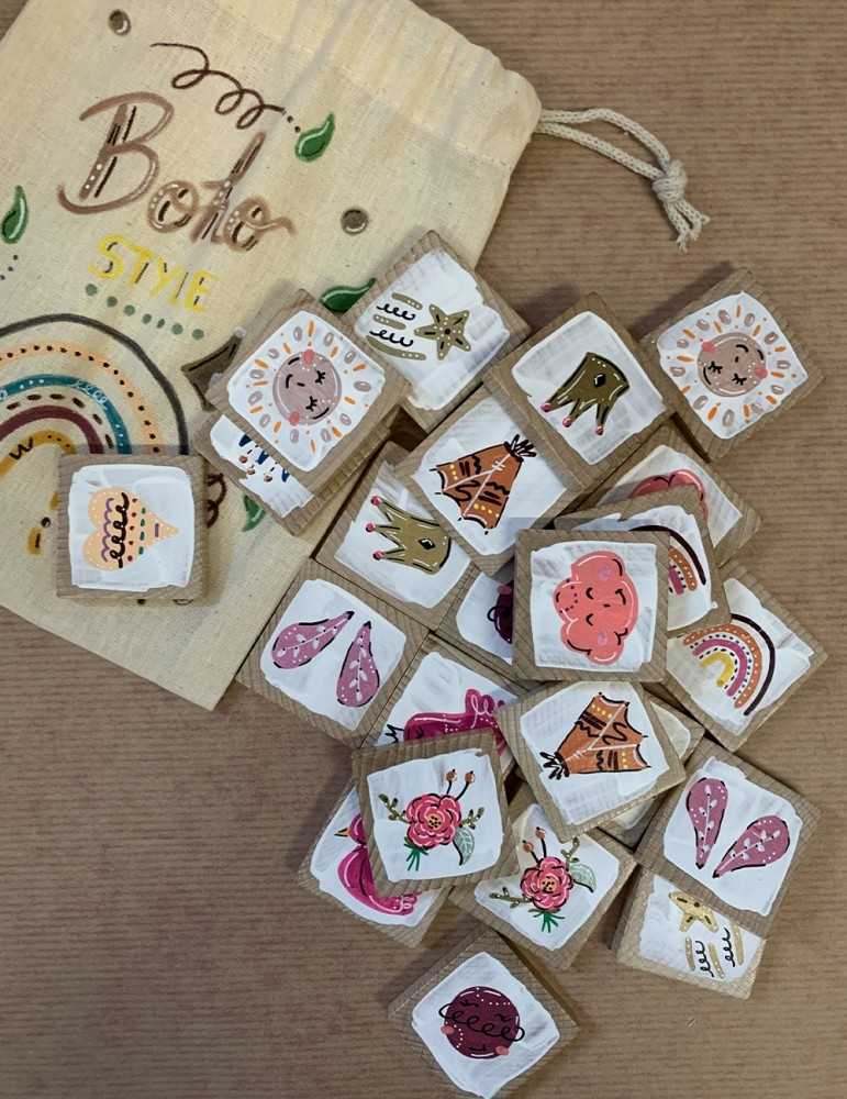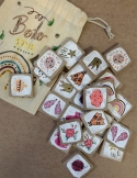 Pochette de rangement en tissu + 24 pièces peintes à la main