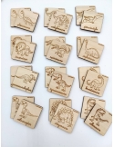 Mélanger les cartes en bois. Les étaler face contre table afin qu'on ne puisse pas les identifier.