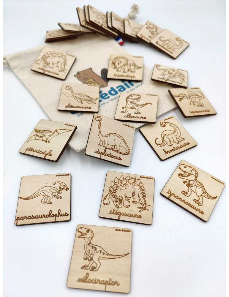 Memo en bois - dinosaures