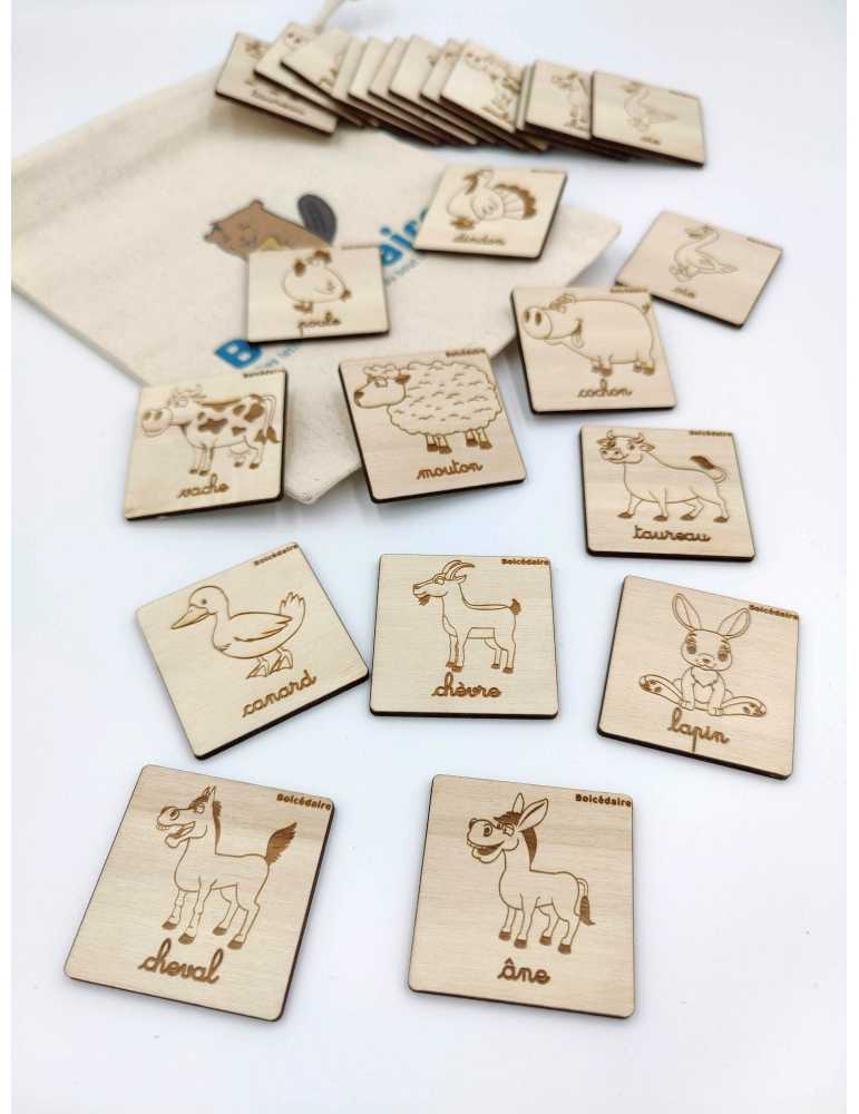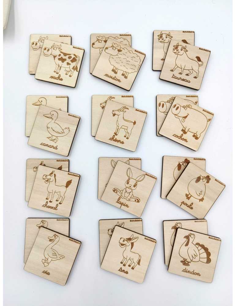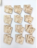 Mélanger les cartes en bois. Les étaler face contre table afin qu'on ne puisse pas les identifier.