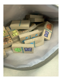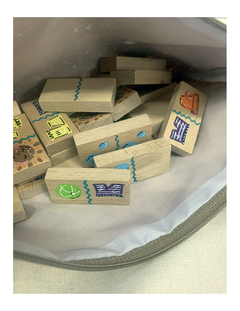 Bois, peinture acrylique, tissu, vernis adapté aux enfants
