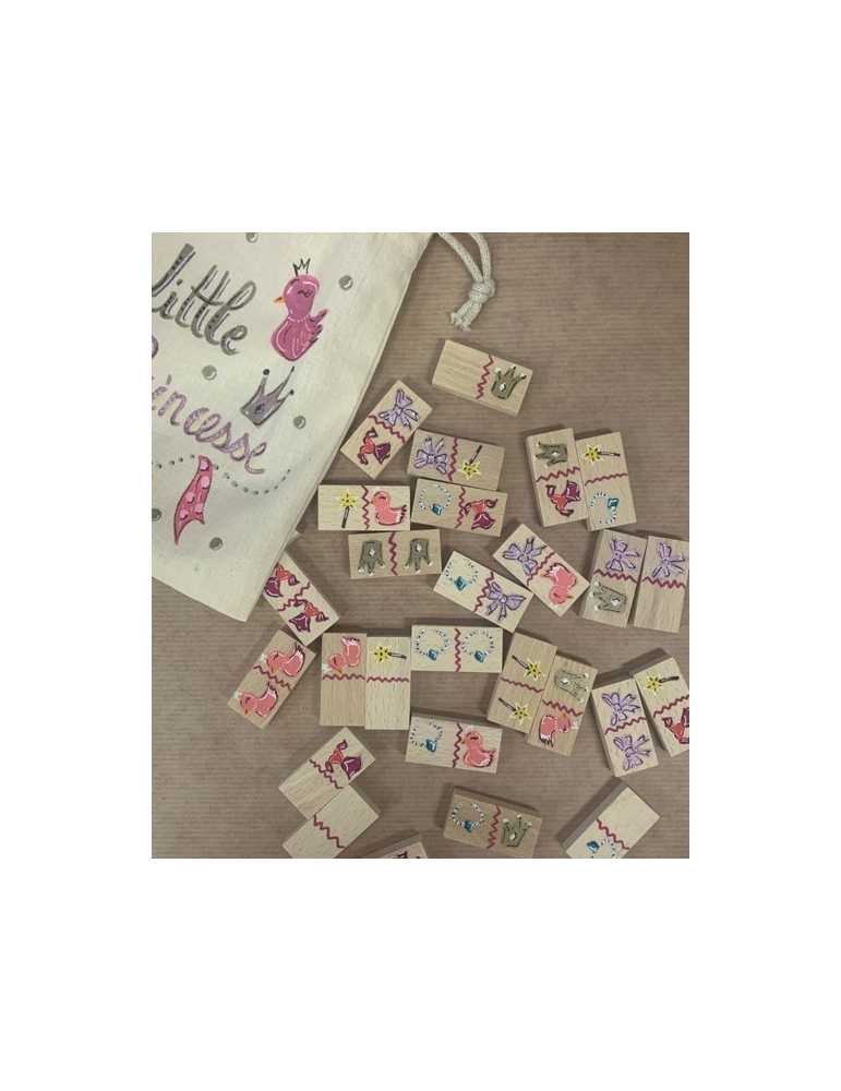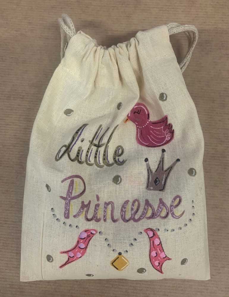 Bois, peinture acrylique, tissu, vernis adapté aux enfants