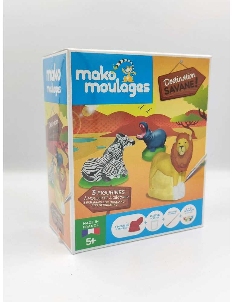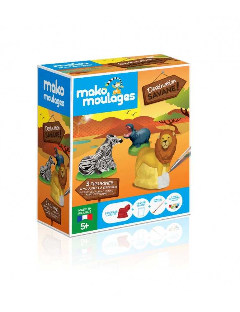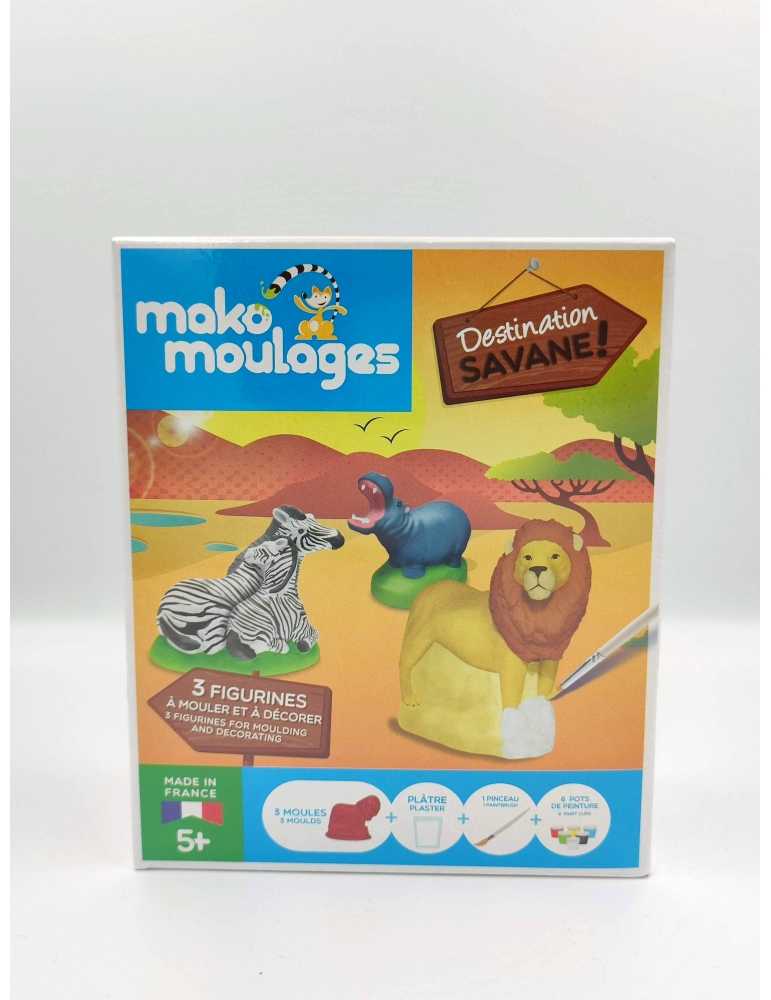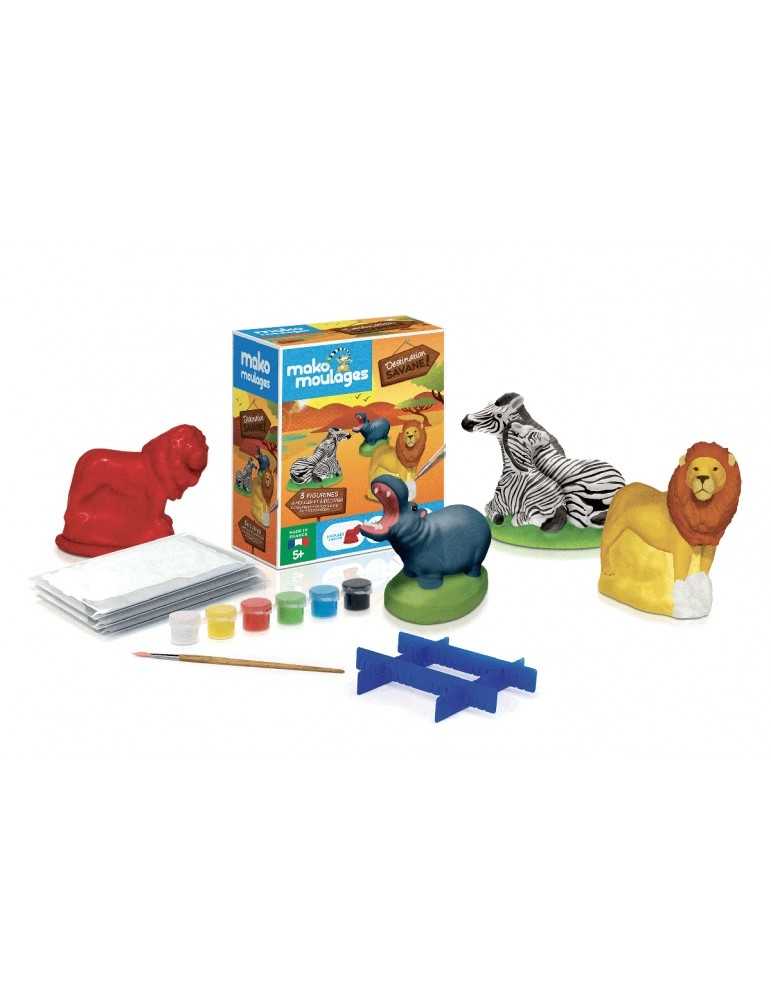 Avec ce kit créatif mako moulages, moule et décore 3 animaux emblématiques de la savane : le lion, l’hippopotame, le zèbre et son petit ! Avec 3 doses unitaires de plâtre, très pratique à utiliser pour un enfant !