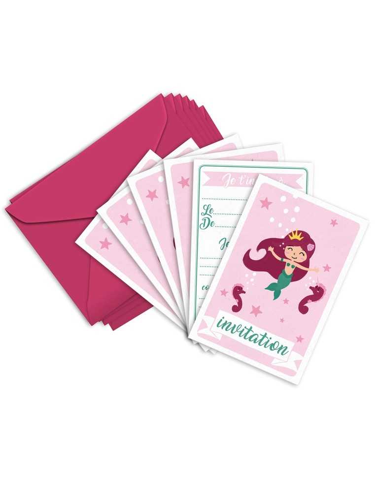 6 cartes d'invitation anniversaire "Sirène", au format carte postale