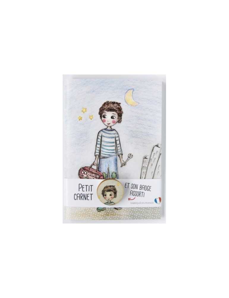 De la papeterie fabriquée en France avec ce petit carnet 48 pages blanches illustré "Clément rêveur" avec badge en bois assorti qui pourra servir de journal intime, d'agenda ou encore de carnet de voyage...