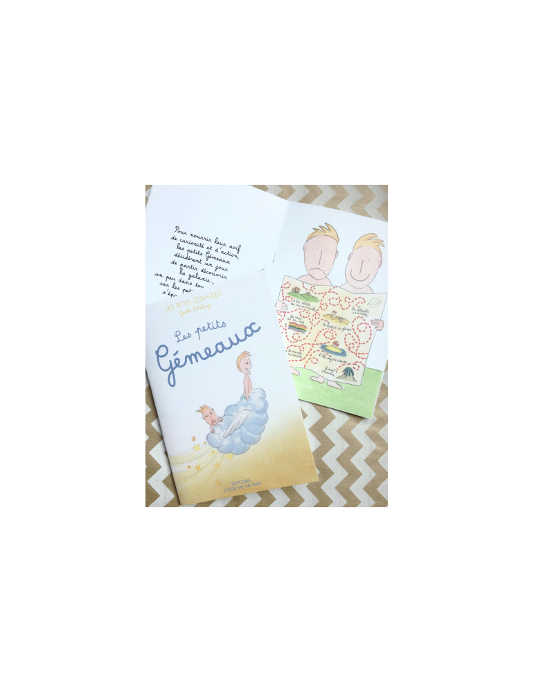 « Pour nourrir leur soif de curiosité et d’action, les petits Gémeaux décidèrent un jour de partir découvrir la galaxie…, un peu dans tous les sens, car les petits Gémeaux s’éparpillent aussi beaucoup. »
