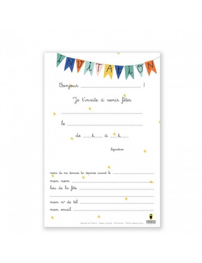 Lot de 8 cartes d’invitation aux illustrations pétillantes, à compléter et à donner à tes invités !