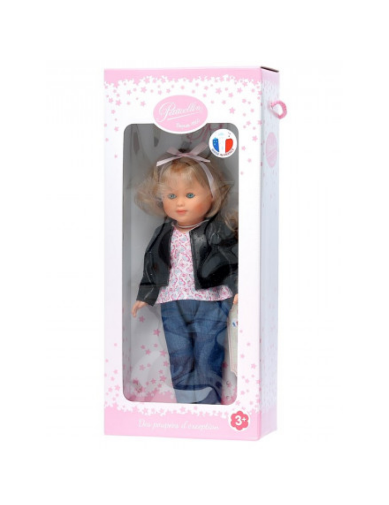 Corps et membres en polyéthylène. Tête en vinyle souple. Yeux dormeurs bleus.