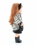 La tenue de la poupée Isabey est composée d'une robe noire sans manches, d'un gilet gris et blanc à sequins, de bottes noires, ainsi que d'un sac et un bandeau noir.