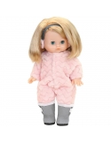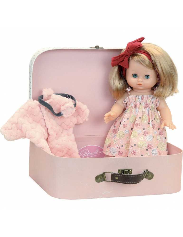 Poupée Câlinette de 28 cm dans sa valisette avec ses jolis vêtements: une tenue légère pour l'été et une tenue chaude pour l'hiver.