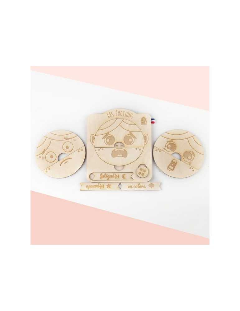 Jeu éducatif en bois de bouleau, pour identifier, s'approprier et apprivoiser les diverses émotions.