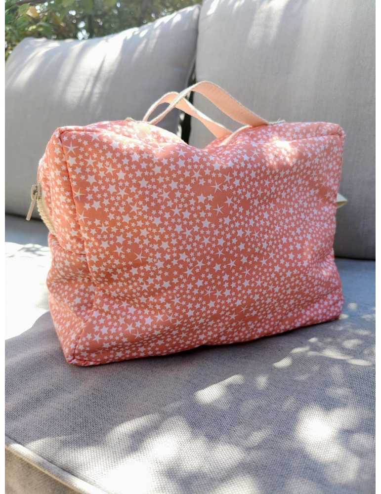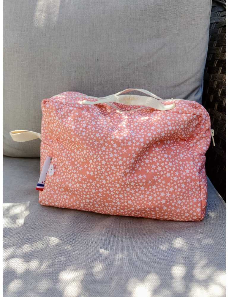 Cette valisette corail est l'accessoire parfait pour ranger et emporter les produits de soin et d'hygiène du bébé lors de ses déplacements : médicaments, couches, lingettes... Doublée d'un tissu éponge, elle est souple et résistante au lavage.