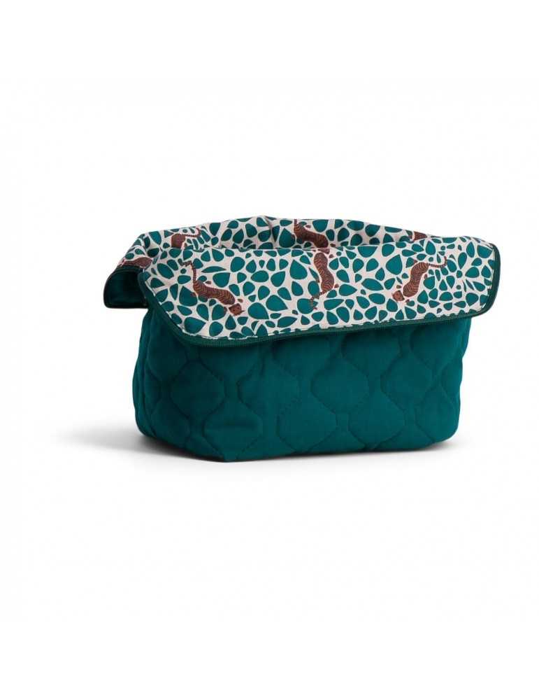 La trousse Mika en coton matelassé uni doublé d'un imprimé tigre et savane est très utile. Dès la naissance, on y range tout le nécessaire de toilette pour bébé, son kit pour la crèche ou encore son doudou. La trousse Mika se transforme aussi en petite panière à jouets ou à produits d'hygiène pour la table à langer. Des tissus certifiés Oeko-tex respectant les Normes CE, des produits à double utilité et pratiques pour les parents et les enfants. Un cadeau idéal à compléter avec sa grande version, la panière évolutive XL.