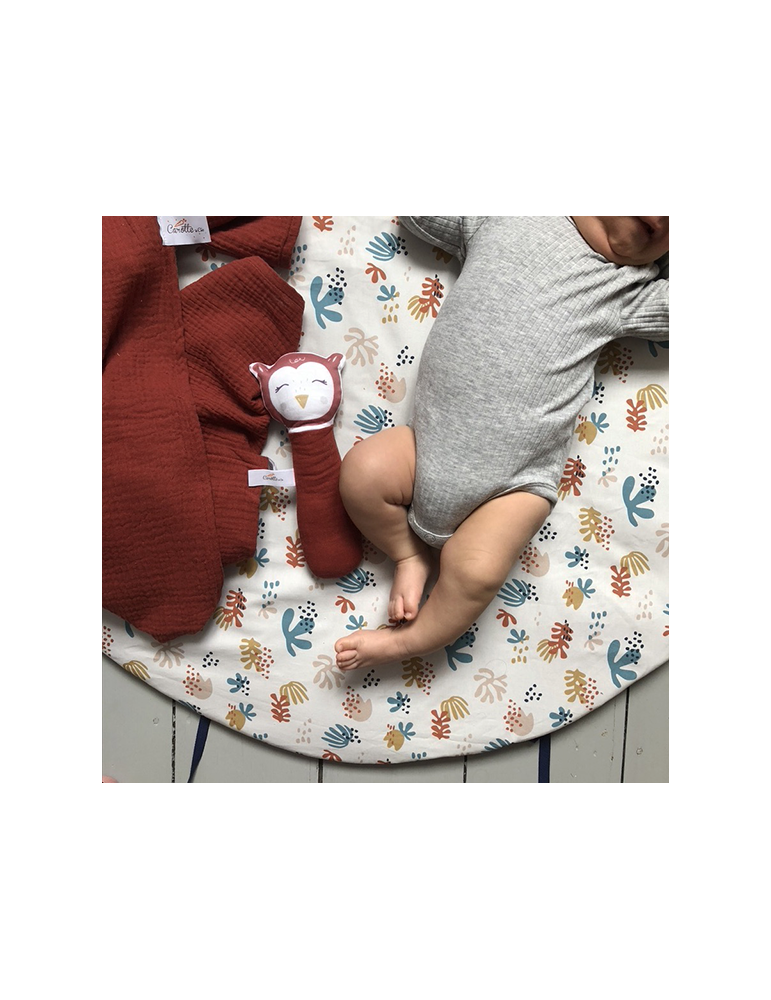 Tapis de jeu transformable Corail pour des heures de jeux… Bébé rêve d’explorer le monde? Le tapis de jeu transformable Fleurs d’automne rouge en tissu permet à bébé de s’amuser partout sans se faire mal. Bien épais, il peut être utilisé dehors comme dedans.